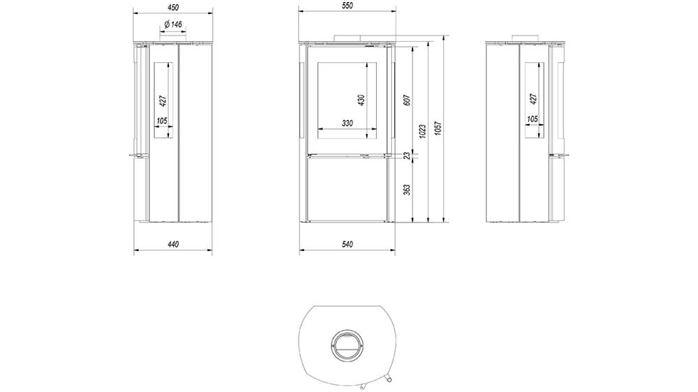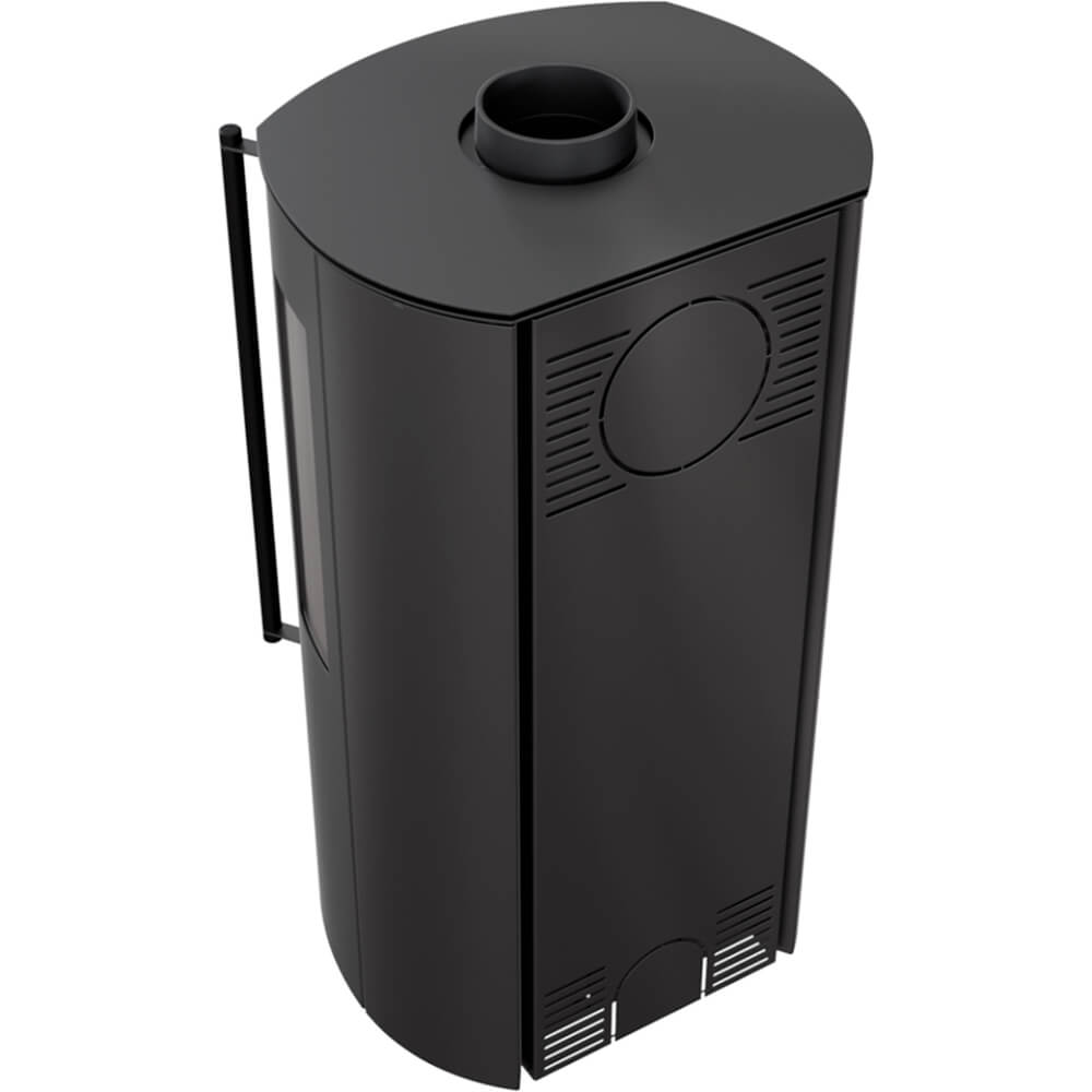 De plus, le poêle est doté d'un système de vitre propre (rideau d'air), c'est-à-dire que l'air est acheminé directement vers la vitre par le système de conduits situés sur les côtés du foyer. De cette manière, l'oxygène est amené au sommet de la chambre de combustion, ce qui brûle les gaz produits par le processus de combustion, ce qui limite encore l'émission de CO nocif dans l'atmosphère.