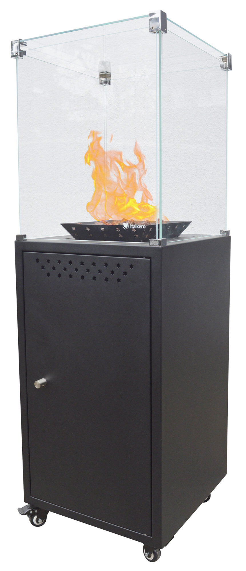 Poêle d'extérieur à gaz GPL Effet Cheminée 131,6x43,4x43,4 cm 7,3 kW en Italkero Steel Etna Black