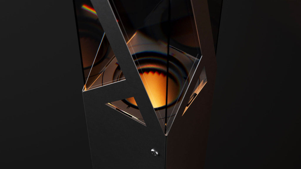 La fiamma all’interno del cilindro in vetro amplifica l’impatto visivo