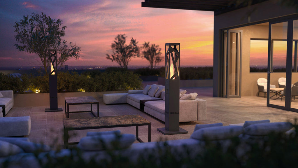 Stufa da Esterno Fungo a Pellet Irisi è una scultura di calore si staglia nell’ambiente con una solida base squadrata, mentre l’intreccio metallico sulla fiamma rimanda alla natura della sua eccezione più contemporanea.