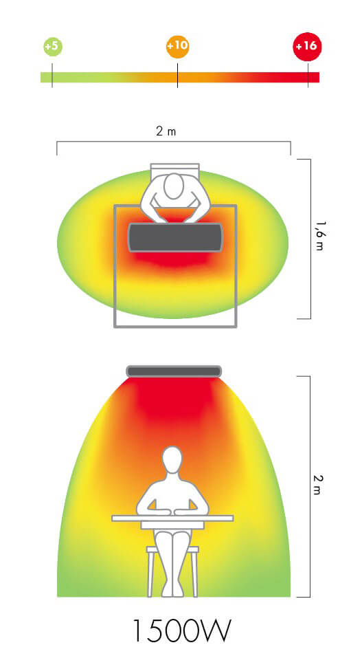 HOT-TOP crée un espace de bien-être chaleureux pour les personnes, aussi bien à l'extérieur que dans les grandes pièces, sans avoir à chauffer l'air et les choses environnantes. Développé en collaboration avec l'Université Enzo Ferrari de Modène. IP55 Convient pour l'intérieur et l'extérieur.