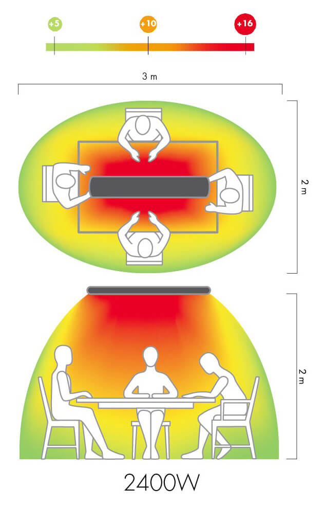 Réchauffer les gens dans des endroits comme les restaurants ou les bars. Même longtemps, il réchauffe de manière enveloppante et agréable.