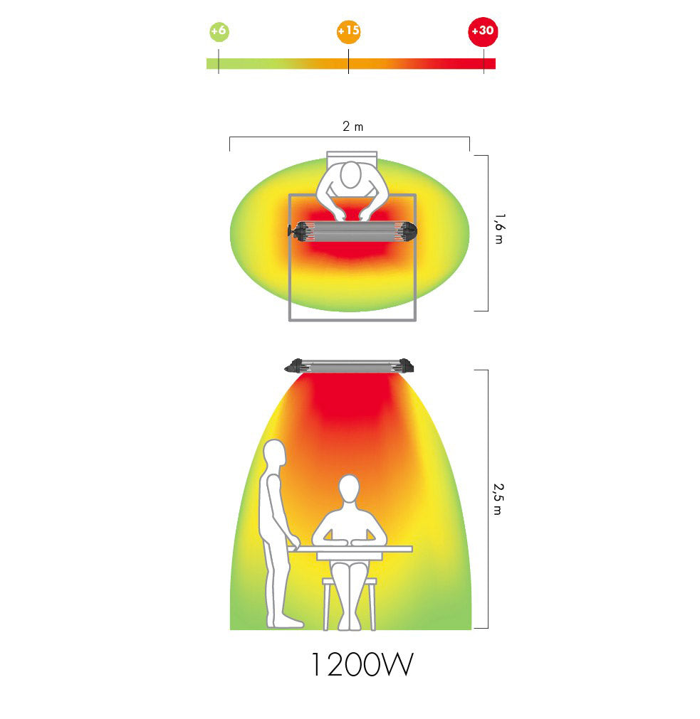 Système modulaire! Puissance : 1200 W. Version avec interrupteur et prise shuko, idéale pour les environnements semi-fermés et extérieurs, grâce à l'indice de protection IP65. Une installation à au moins 2,5 m du sol est recommandée. Lampe gelée.