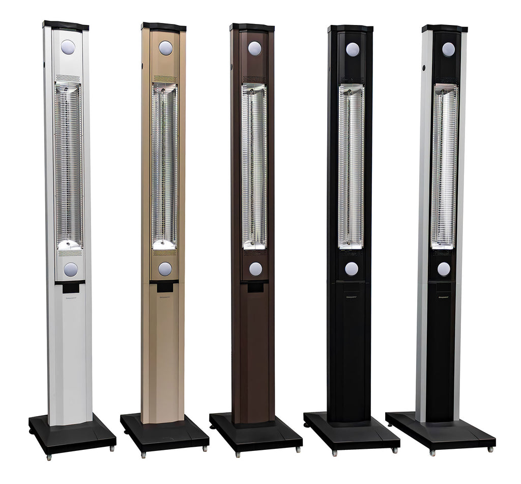 Stufa Elettrica ad infrarossi da Esterno 50x25x200 cm in Fibra di Carbonio con Luce Led Skyline Grigio Tortora