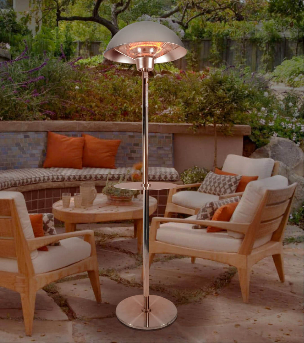 Chauffage Électrique Infrarouge sur Pied Ø50 cm 2000W avec Table Extérieure Noire