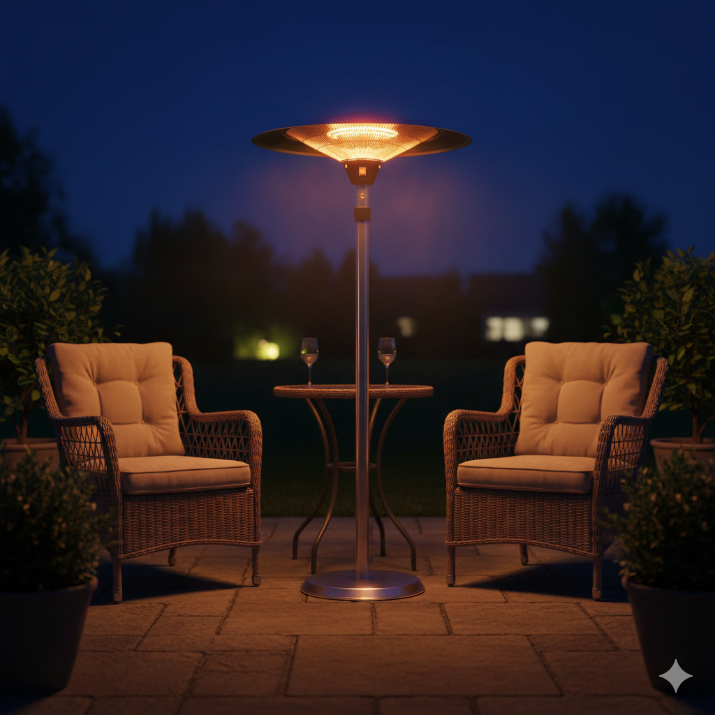 La tecnologia a infrarossi assicura un calore diretto, silenzioso e privo di emissioni sgradevoli di fumo o gas, perfetto quindi anche per spazi chiusi o semi-aperti.