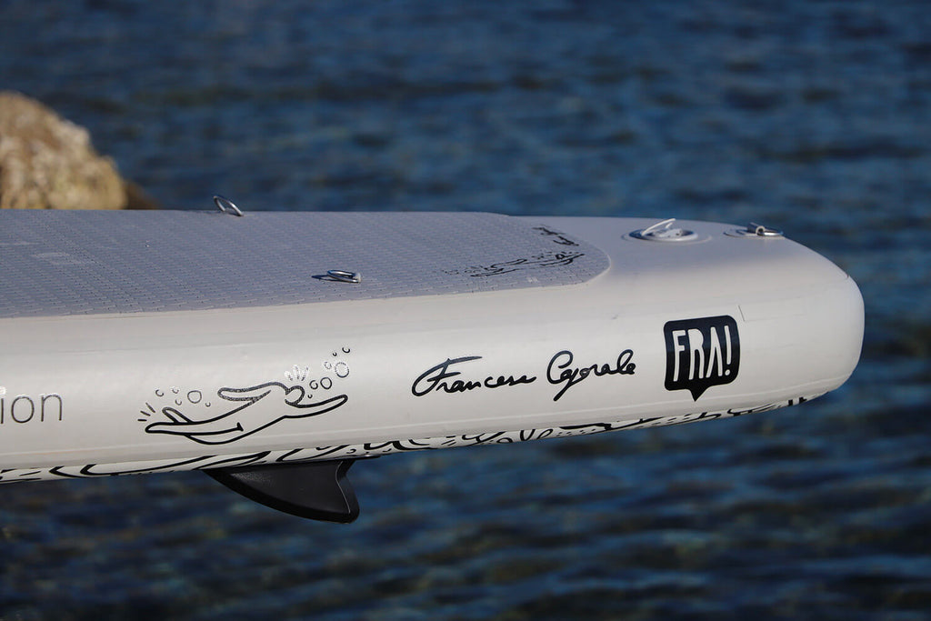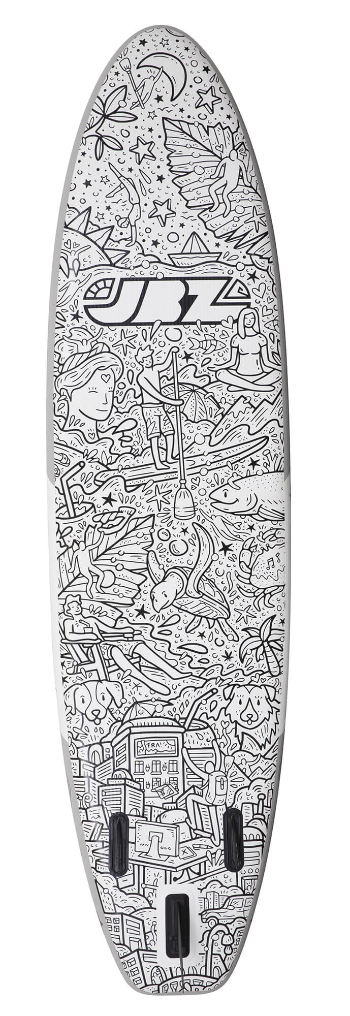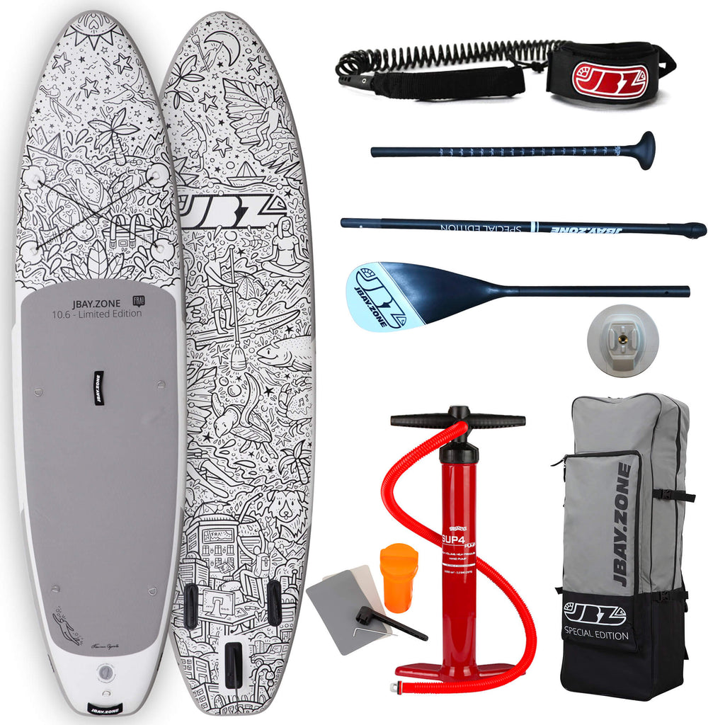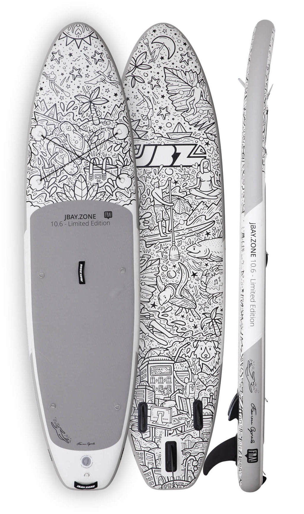 Grâce au partenariat avec FRA!, un artiste de griffonnage de renommée internationale, le SUP JBAY.ZONE Limited Edition présente un design absolument unique. Une histoire de sport et d'évasion du quotidien racontée par la main experte de FRA ! utiliser le SUP comme toile, donnant vie à une planche extraordinaire. Le SUPFRA! Mesurant 320x81 cm, il est polyvalent et utilisable pour différents types d'excursions et d'entraînements aquatiques et comprend un ensemble d'accessoires complet avec tout ce dont vous avez besoin. La pagaie incluse, au lieu du manche en aluminium standard, comporte une poignée en fibre de carbone.