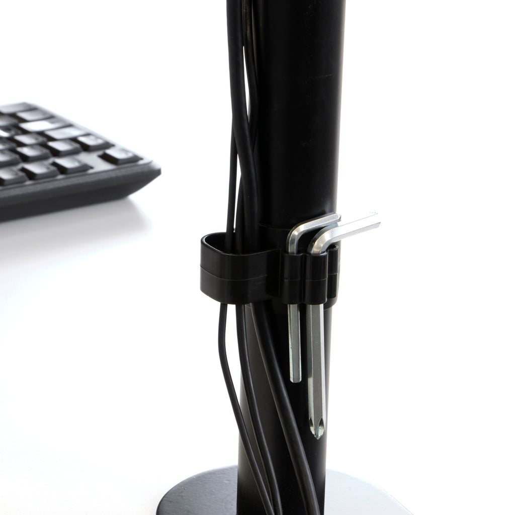 - Deux bras de moniteur extensibles d'une longueur maximale de 430 mm. Comprend des presse-étoupes pour laisser le câblage organisé et caché.