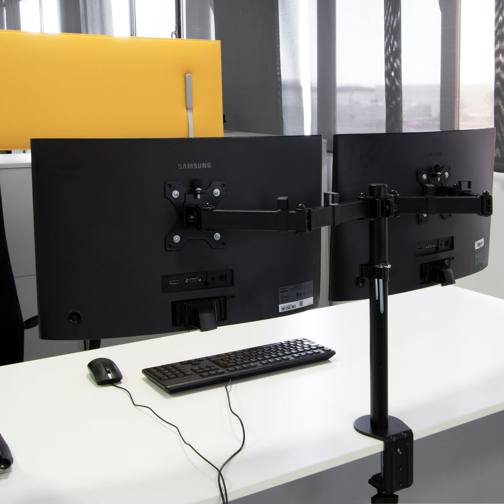 - Double moniteur PC de bureau prenant en charge de 13 à 32 pouces jusqu'à 8 kg par bras avec VESA 75x75 mm ou 100x100 mm.