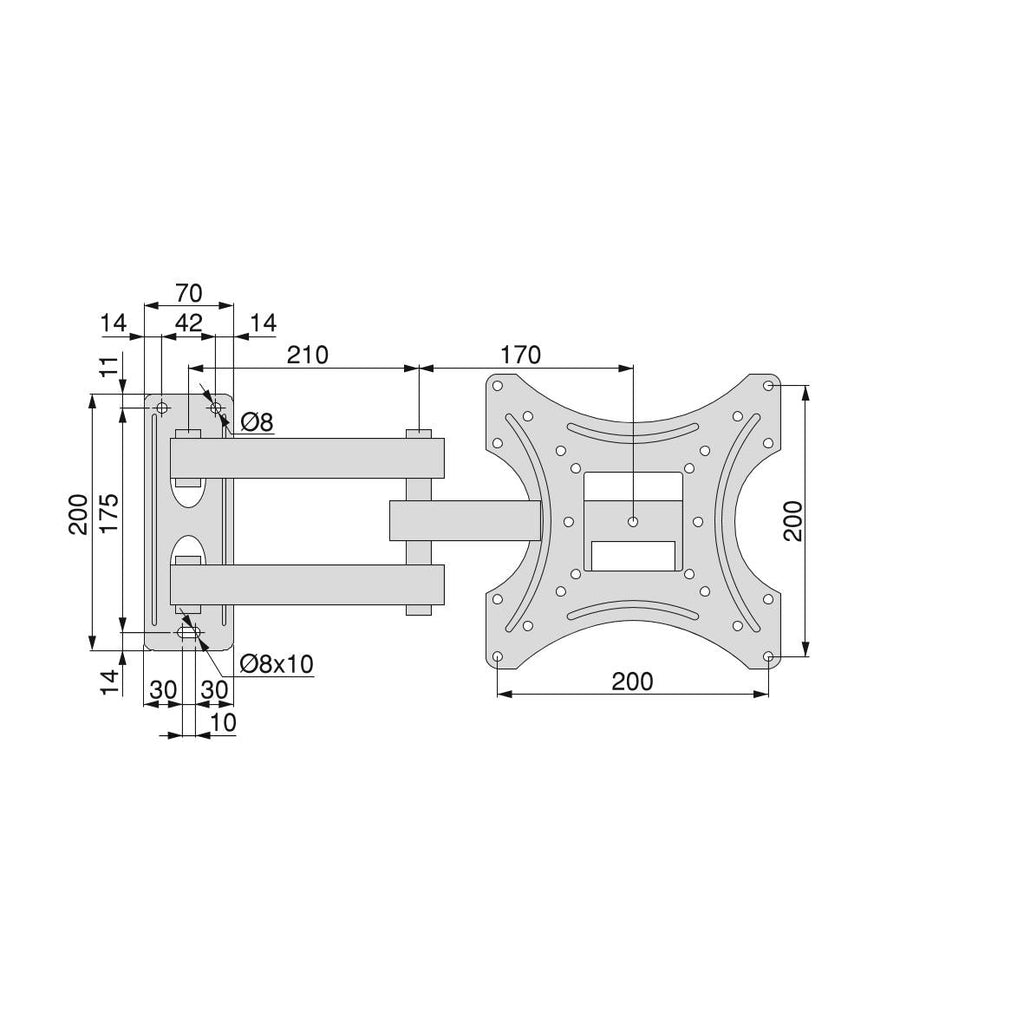 - Bras TV articulé et extensible avec distance au mur de 32 à 402 mm.