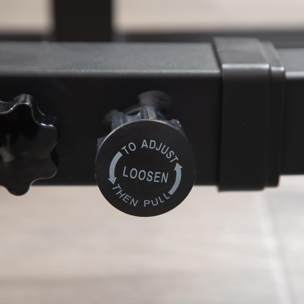 - HAUTEUR AJUSTABLE : La hauteur du support d'haltères est réglable sur 4 niveaux de 110 à 160 cm, tandis que la base peut être ajustée sur 10 niveaux, de 67 à 114 cm, pour garantir les meilleurs résultats à tous les athlètes.