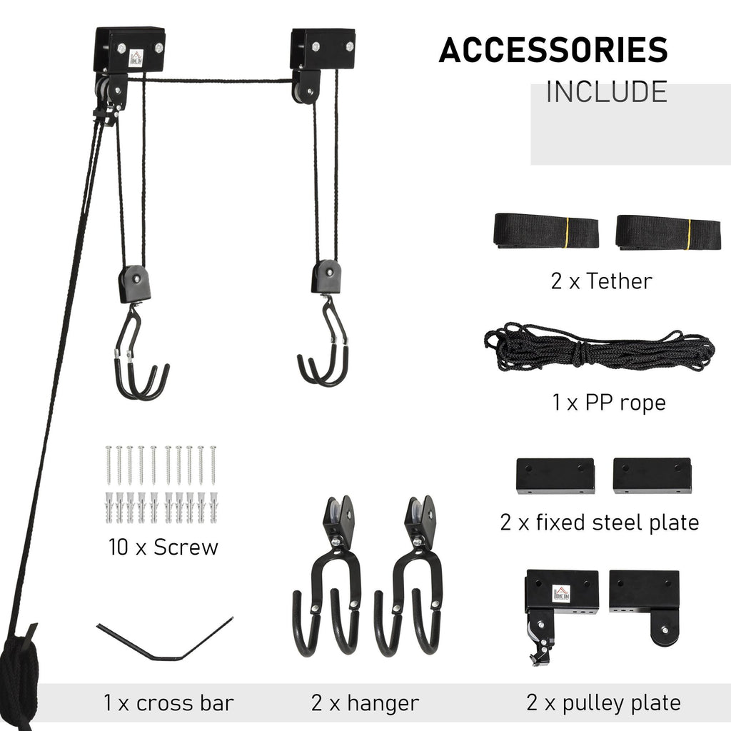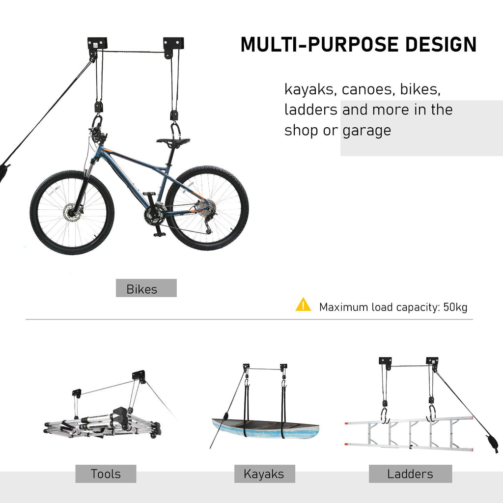 Kayak Support Palan Plafonnier Max 50 Kg en Acier Noir