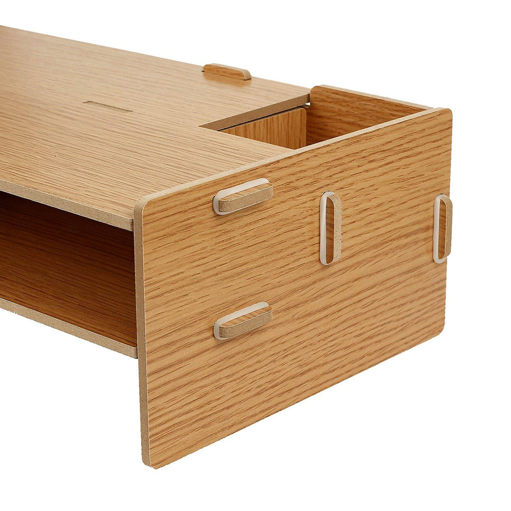Ce support de moniteur est fabriqué en bois et convient à la maison et au bureau. Assure une hauteur d'écran correcte pour éviter les douleurs au cou et au dos, pour travailler confortablement . Convient à n'importe quel endroit, par exemple salon, chambre à coucher, bureau, bureau, etc. Multifonctionnel, vous pouvez l'utiliser comme support d'écran d'ordinateur, support TV , organisateur de bureau, étagère pour clavier, etc. Design créatif et moderne, 2 étagères comme organisateur de bureau, plus de désordre
