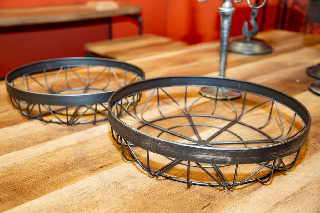 Paire de vide-poches en métal tressé. Des lignes pures industrielles et métropolitaines donnent une allure élégante mais très actuelle.