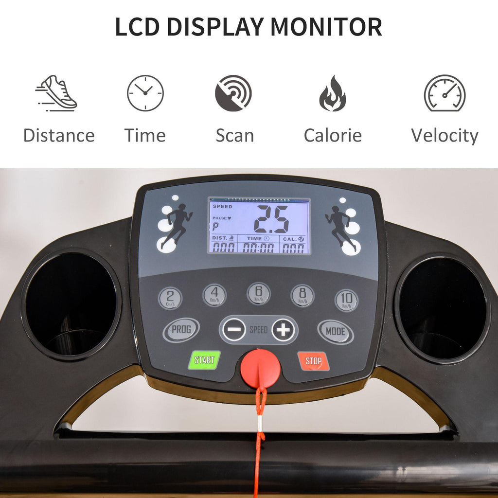- Écran LCD : gardez un œil sur vos objectifs, avec l'écran LCD, vous pouvez vérifier le temps, la distance, les calories et la vitesse. Le tapis de course à domicile est équipé d'une clé de sécurité, qui arrête la course si elle est retirée, réduisant ainsi le risque de blessure en cas de chute.