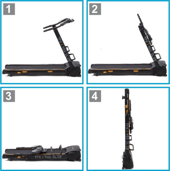 TFK 455 Slim d'Everfit est l'un des nouveaux produits de la gamme Everfit peu encombrant. Équipé de tout le confort, le TFK 355 Slim est un tapis de course compact qui , en position fermée, atteint une épaisseur inférieure à 26,00 cm du sol . Le tout nouveau système d'ouverture/fermeture facile TFK 355 vous permettra de vous entraîner sur le tapis de course et de le refermer en quelques instants, en tout confort et sécurité, sans aucun outil.