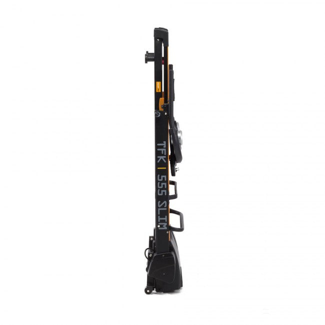TFK 555 Slim d'Everfit est l'un des nouveaux produits de la gamme Everfit peu encombrant. Équipé de tout le confort, le TFK 555 Slim est un tapis de course compact qui , en position fermée, atteint une épaisseur inférieure à 26,00 cm du sol . Le tout nouveau système d'ouverture/fermeture facile TFK 555 vous permettra de vous entraîner sur le tapis de course et de le refermer en quelques instants, en tout confort et sécurité, sans aucun outil.