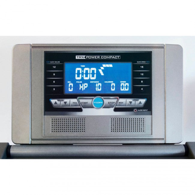 La console est simple et intuitive, enrichie d'un écran LCD rétro-éclairé bleu , elle affiche des données d'entraînement telles que : vitesse - fréquence cardiaque - distance - temps - inclinaison - consommation de calories - tour 400 mètres - programme de course, la vitesse et l'inclinaison peuvent également être augmentées à l'aide des touches de sélection situées sur la console ou sur la main courante.