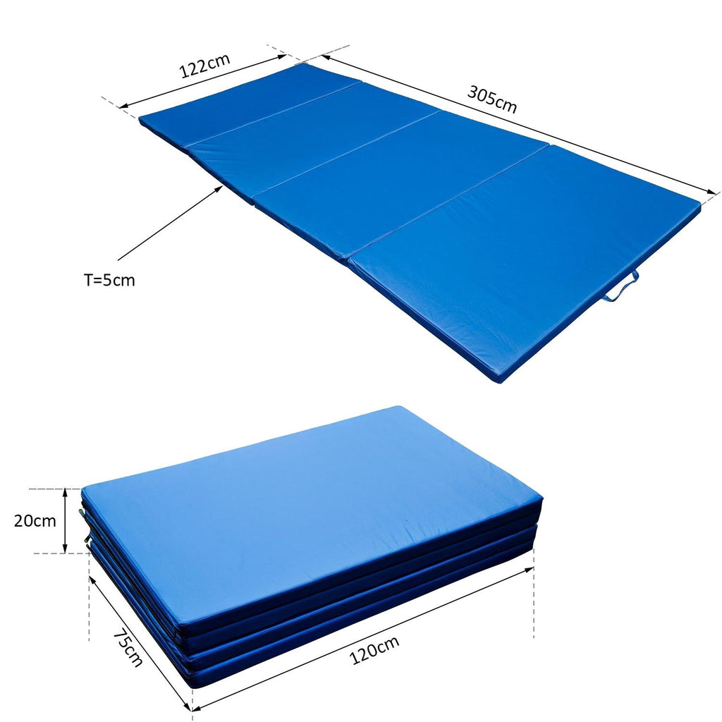 Tapis de fitness et de yoga bleu pliable 305x122x5 cm