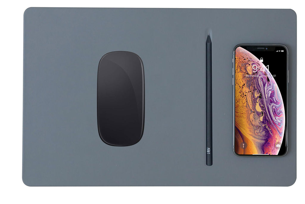 Tapis de souris 34,6x22,5x0,5 cm avec base de charge rapide sans fil grise