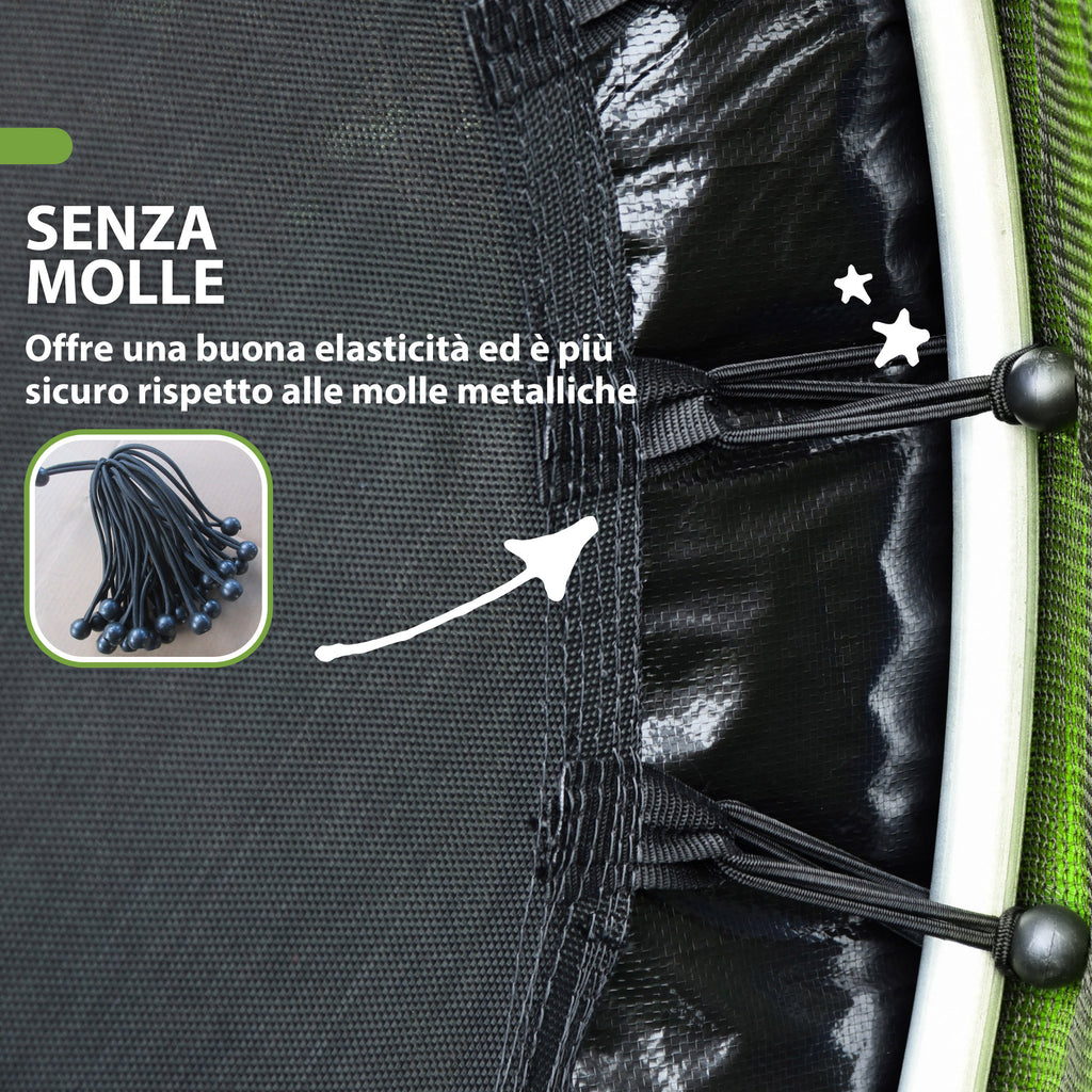 - STRUTTURA SICURA: Il trampolino elastico per bambini in PP garantisce una lunga durata nel tempo. La rete di sicurezza e il rivestimento dei tubi metallici in plastica prevengono il rischio di incidenti e i 3 ingressi a cerniera facilitano l'ingresso