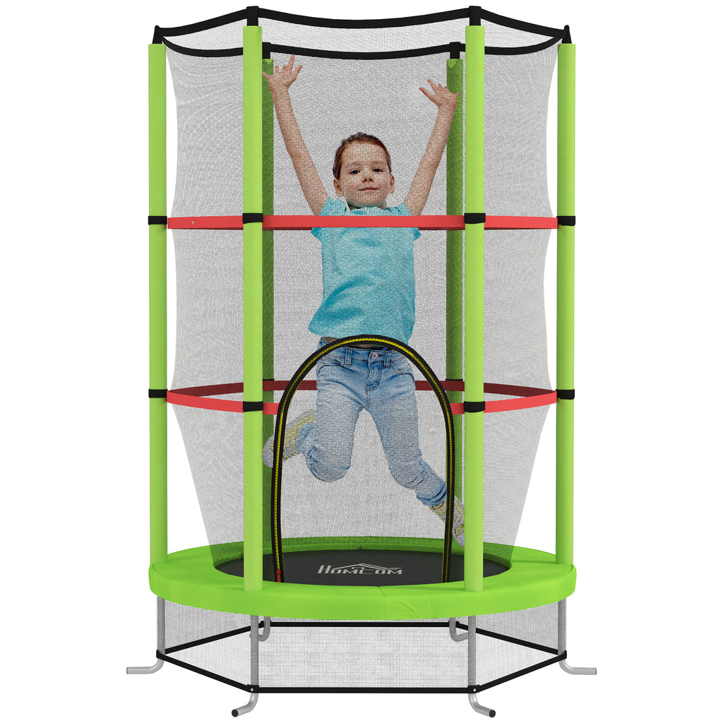 Tappeto Elastico per Bambini 3-6 Anni Ø140x190 cm con Rete di Protezione Verde e Nero