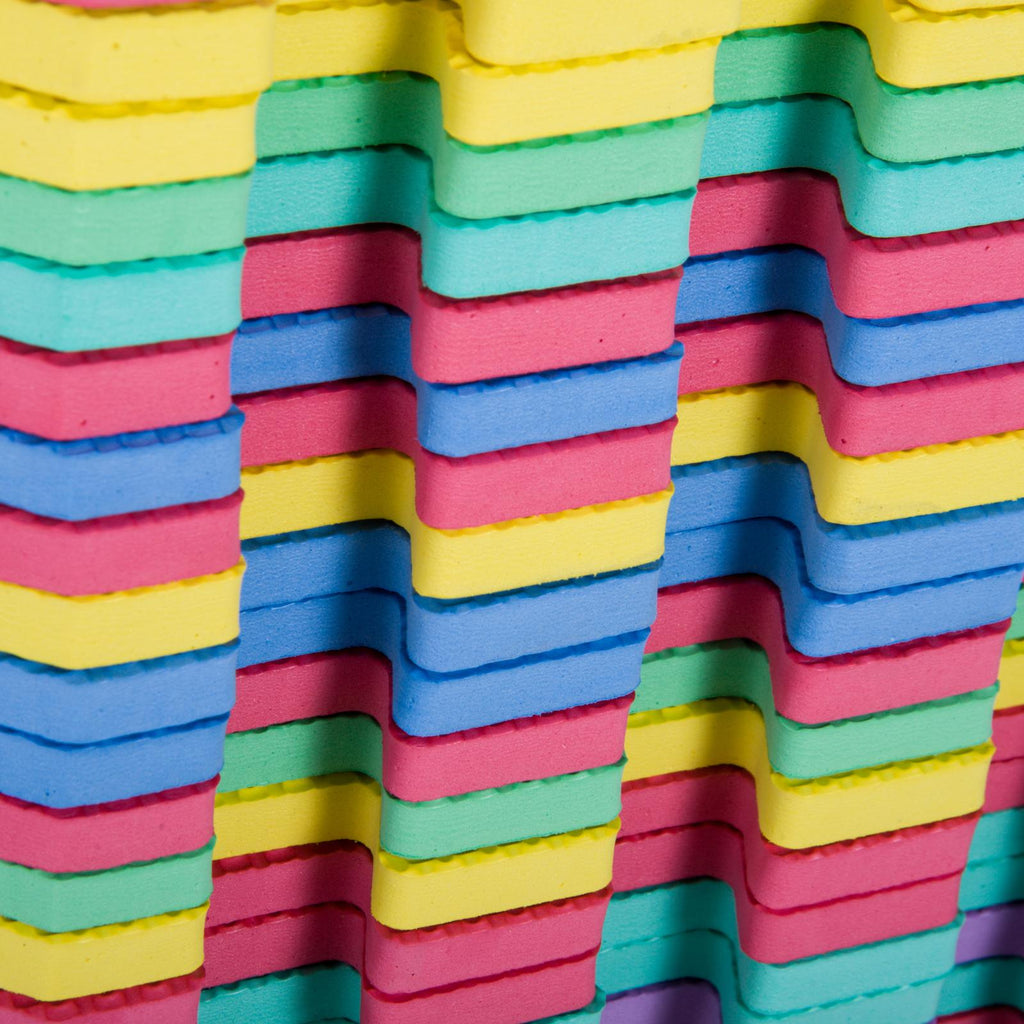 Cet ensemble composé de 36 carreaux multicolores est un bel ajout à une chambre d'enfant.