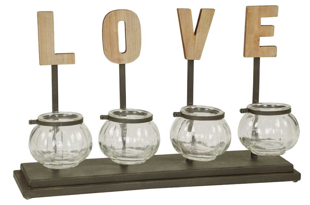 Plaque d'amour avec bocaux en verre 47x16.5xh29.5 cm