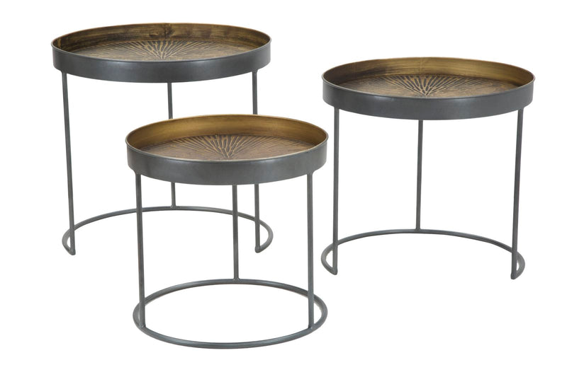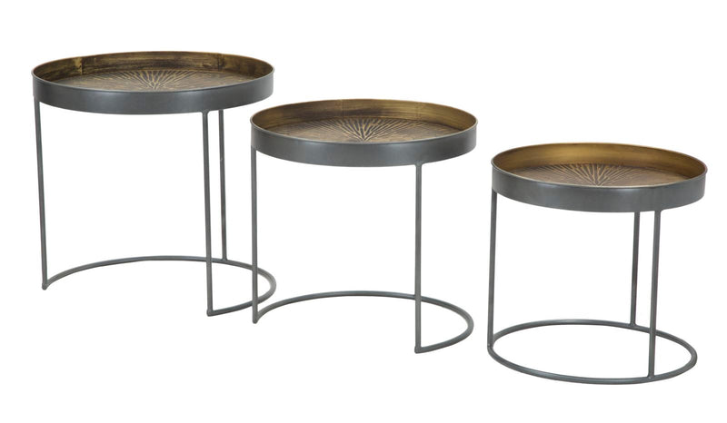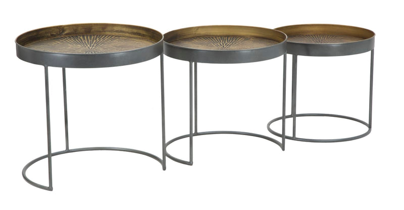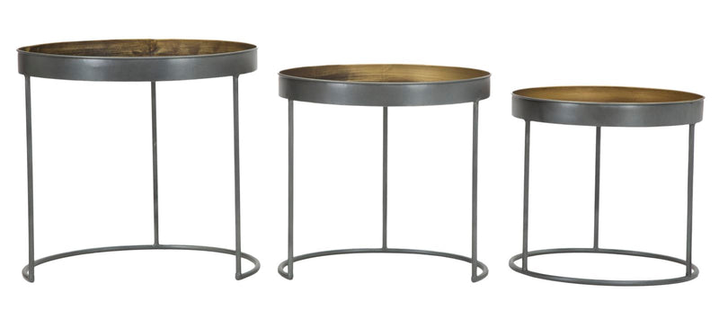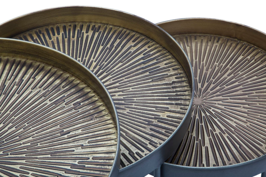 Opis Tables Basses Set 3 Pcs Ø50,5x48-46x43-40,5x38 cm en Fer Noir et Bronze
