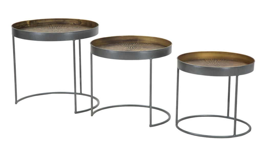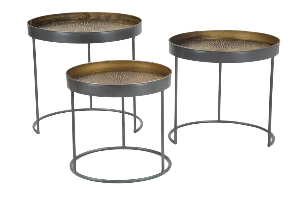 Trio de tables en fer aux lignes essentielles parfaites pour mettre en valeur les plantes, les lampes de table et la décoration.