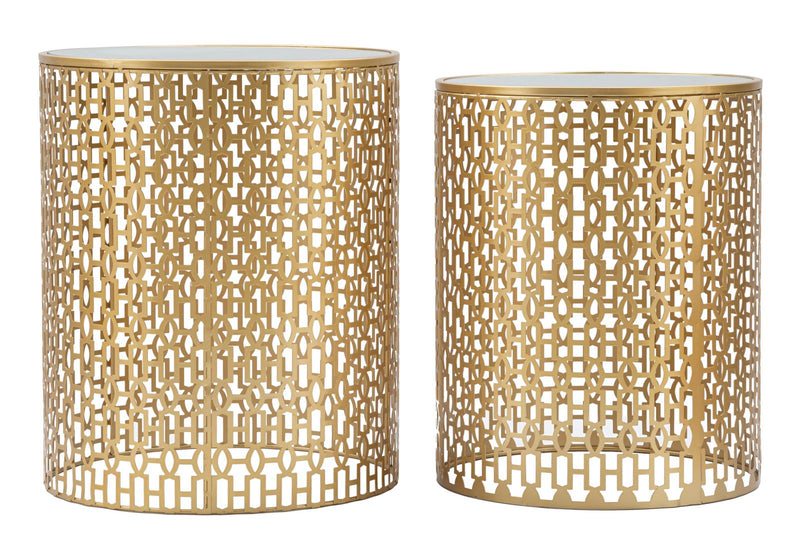 Oblin Ø41x50-37,5x47 cm Couple Tables en Fer MDF et Verre Doré