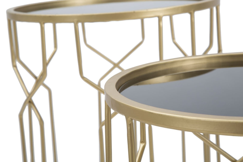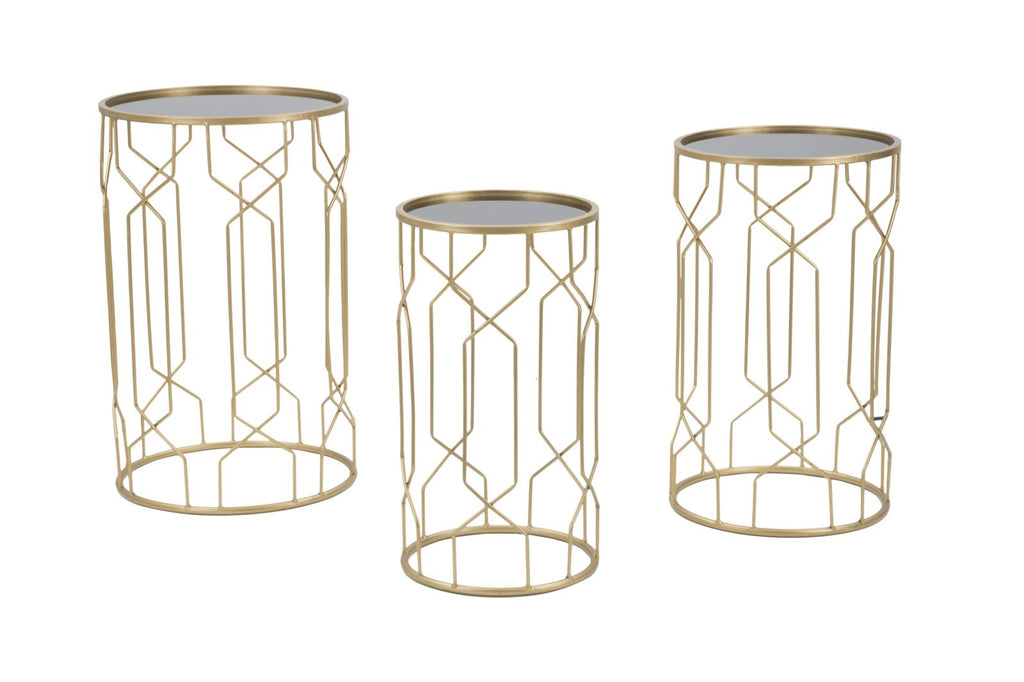 Glam Lignes Tris Ø40x63-35x57,5-30x53,5 cm Tables en Fer et Verre Doré
