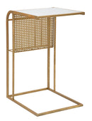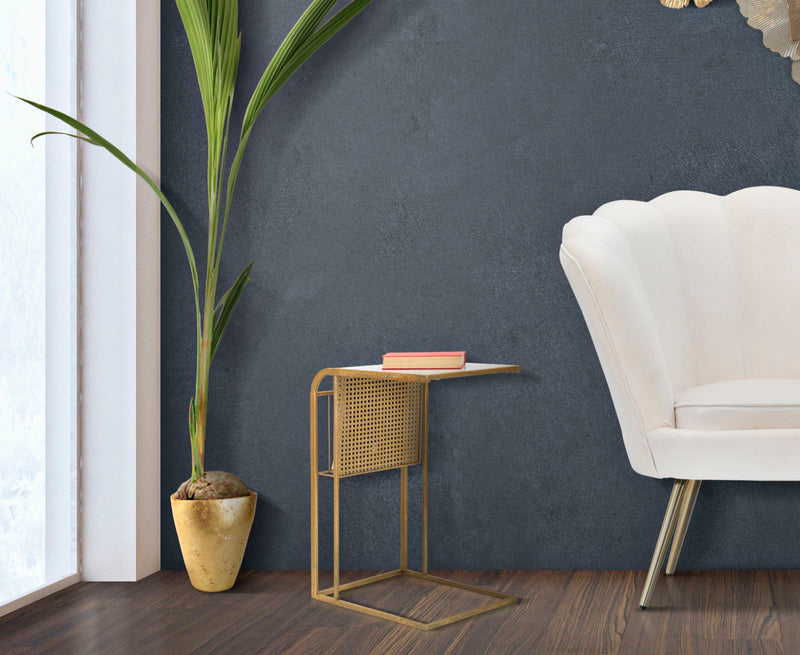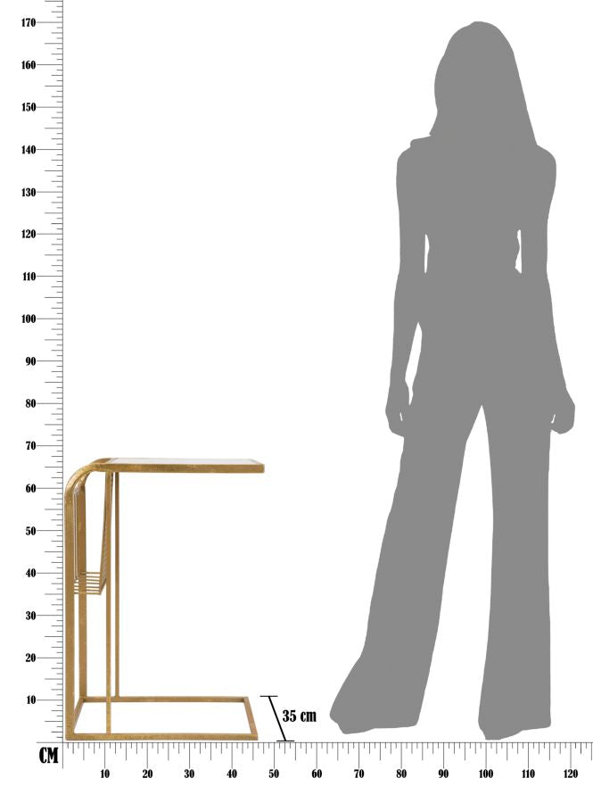 Table basse porte-journaux en marbre 46x35x65 cm en fer et marbre doré et blanc