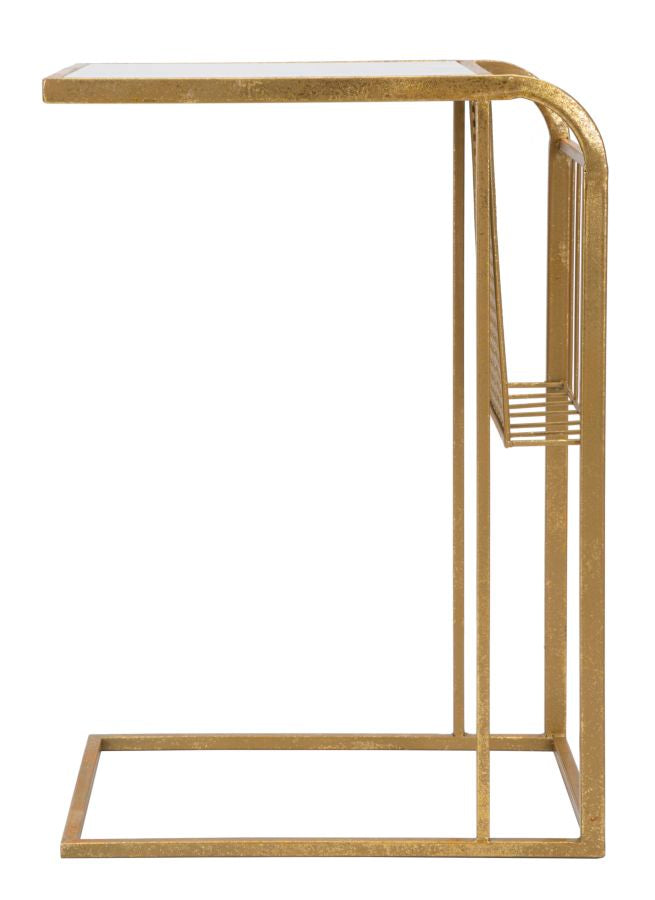 Table Basse en Marbre pour Journaux 46x35x65 cm en Fer et Or et Marbre Blanc