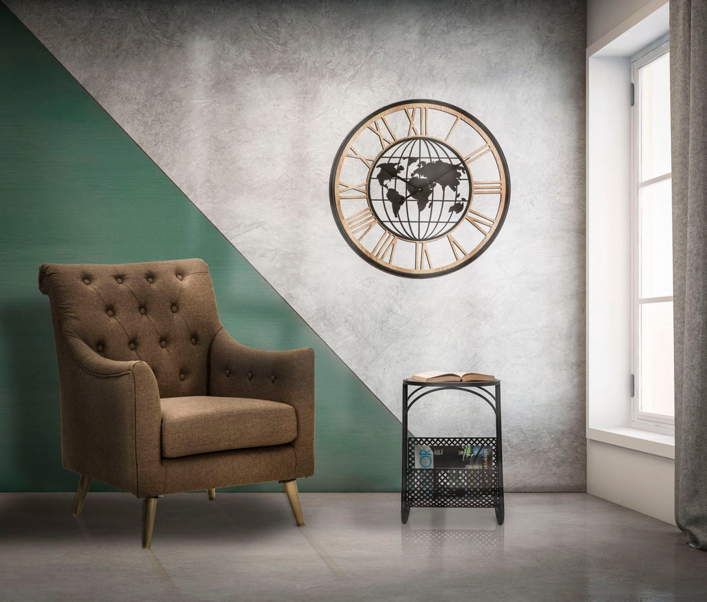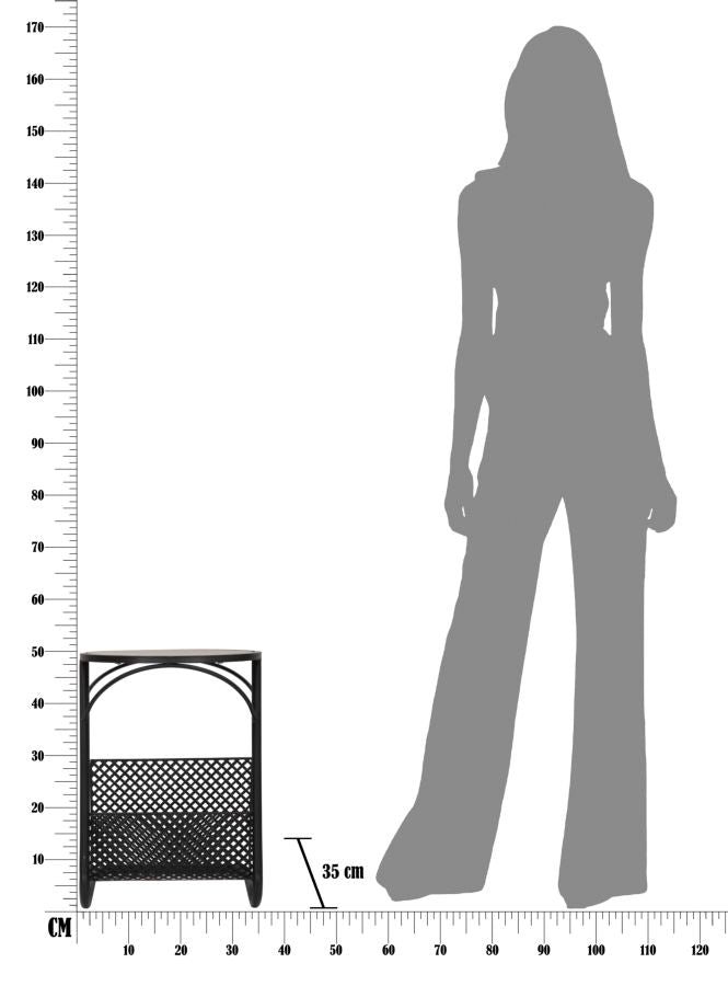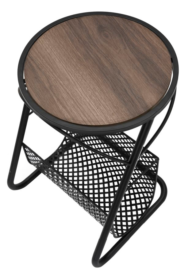 Table à journaux Ø35x50 cm en fer et MDF noir et marron