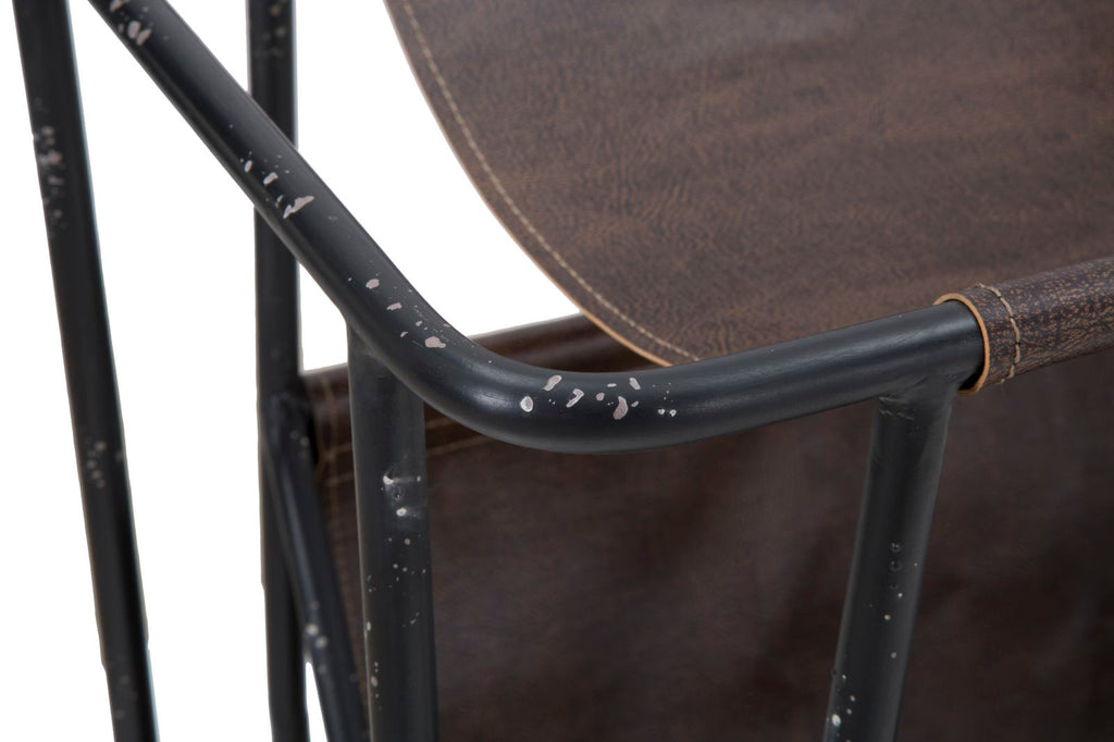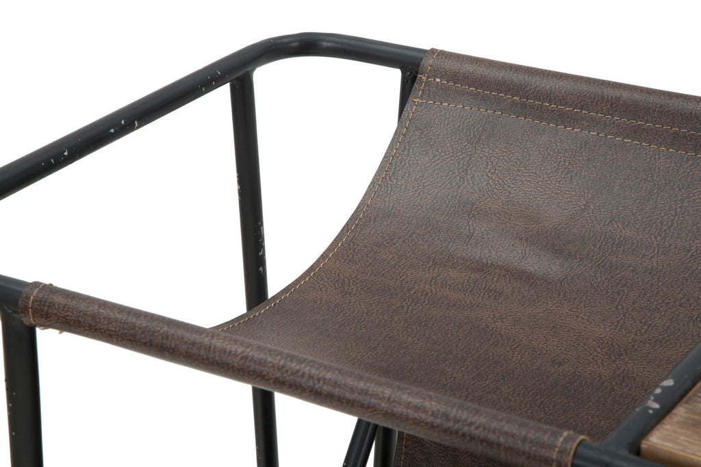Table à journaux Simply 83,5x42x61 cm en fer et bois de sapin et PU noir et marron