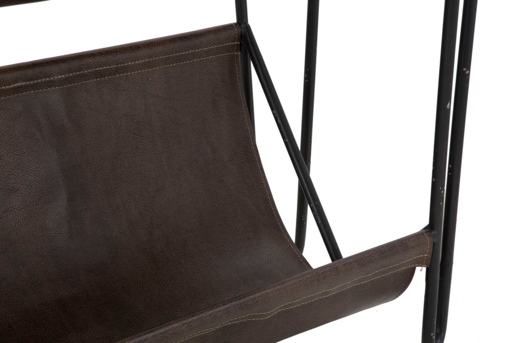 Table Porte-journaux Simply 83,5x42x61 cm en Fer et Bois de Sapin et PU Noir et Marron
