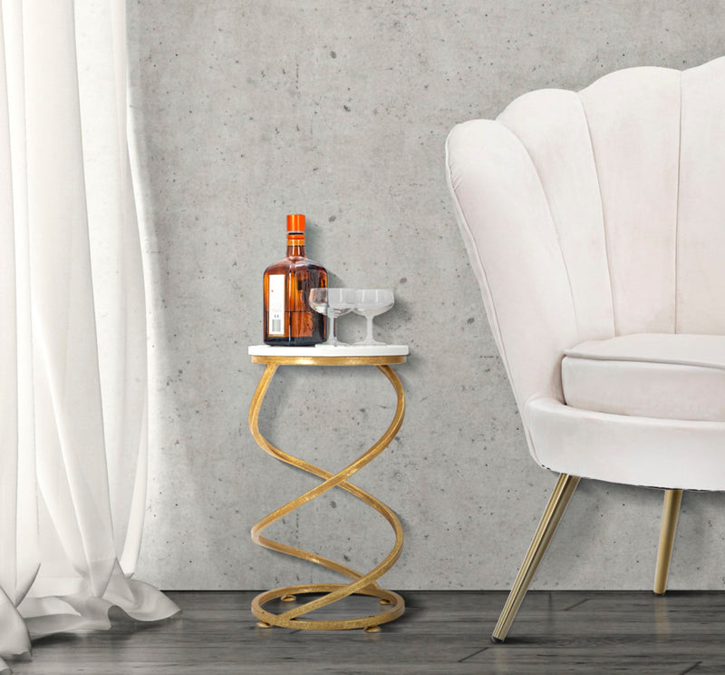 Table Basse Spirale en Marbre Ø27,5x47,5 cm en Fer et Or et Marbre Blanc