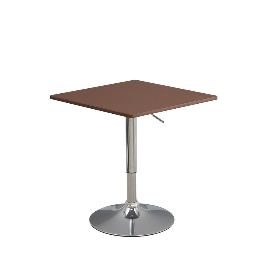 Scopri il design elegante di questo tavolo da bar quadrato, nella colorazione marrone. Il tavolo Lima ha un piano in MDF color marrone delle misure 60x60 e un'altezza regolabile dai 70 ai 90 cm, rendendolo la soluzione ideale se sei in cerca di un elegante tavolo da bar. La base cromata fornisce un supporto solido anche quando viene utilizzato in modo intensivo e grazie alla possibilità di poterlo regolare in altezza è l'ideale anche come tavolo da bar.
