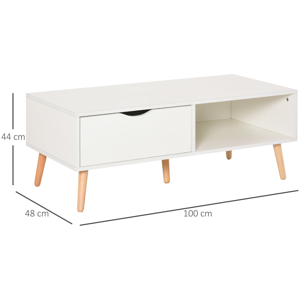 Table basse avec tiroir 100x48x44 cm en bois blanc