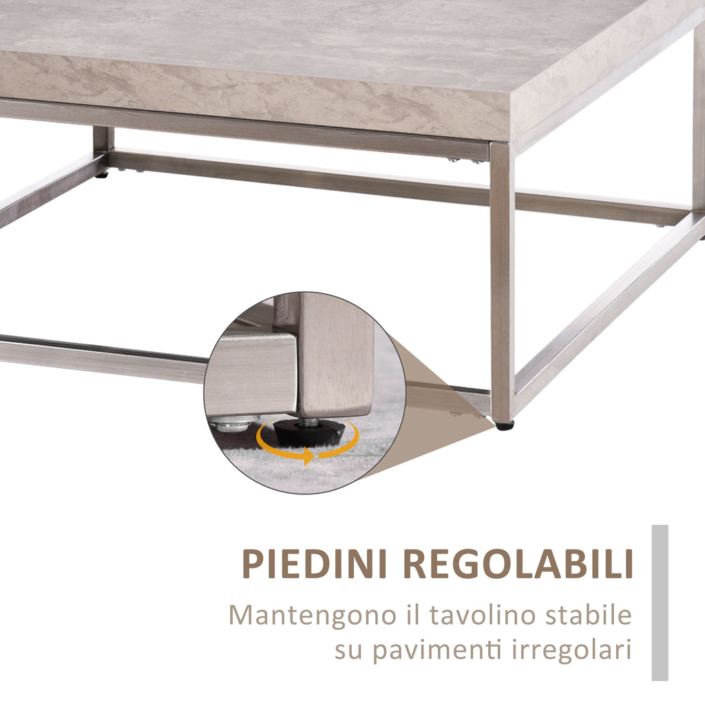 Donnez une touche unique à votre maison avec la table basse moderne. Sa structure en acier inoxydable avec finition satinée combinée au plateau effet béton rend la table basse carrée originale et parfaite pour différents environnements. Il est doté de pieds réglables pour rester stable là où vous souhaitez le placer. L'accessoire d'ameublement parfait pour ceux qui veulent se démarquer.