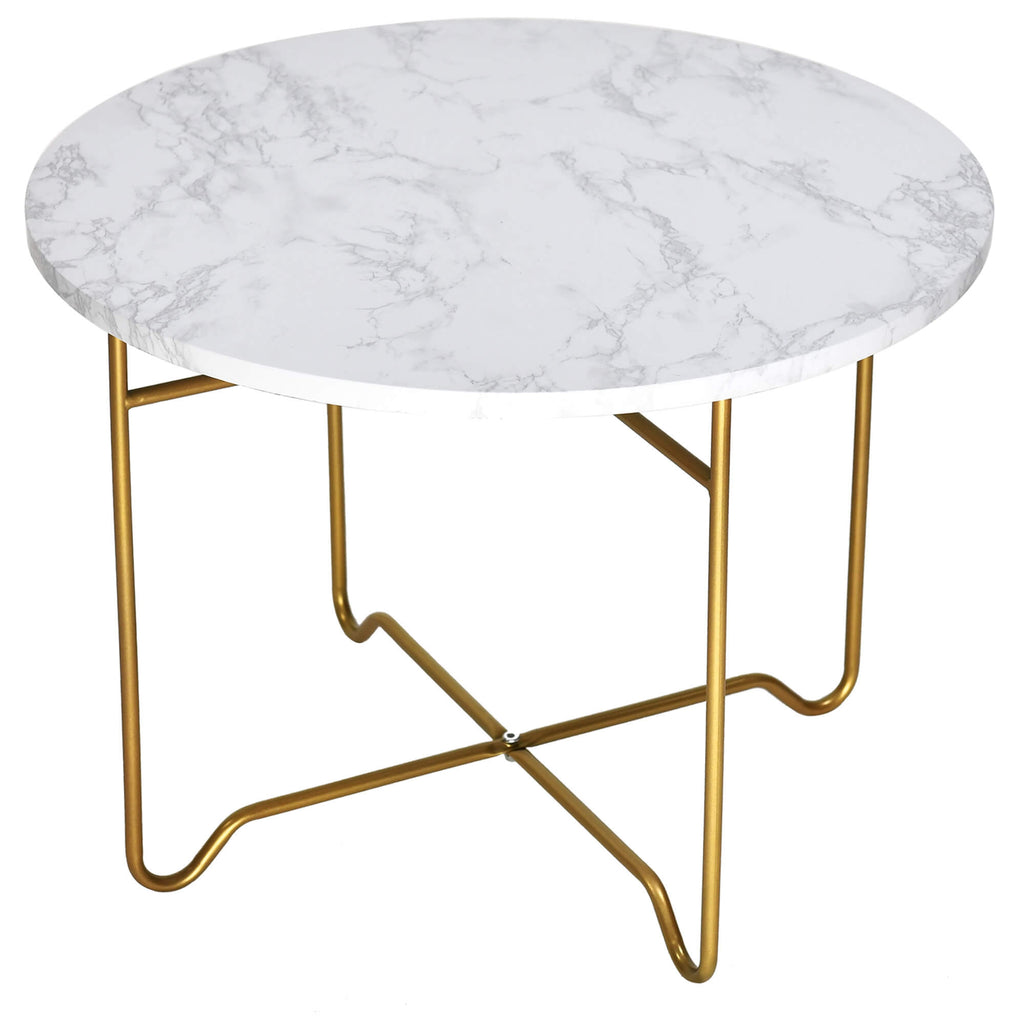 Table Basse Ø55x40 cm Effet Marbre Motti Emma Or et Blanc