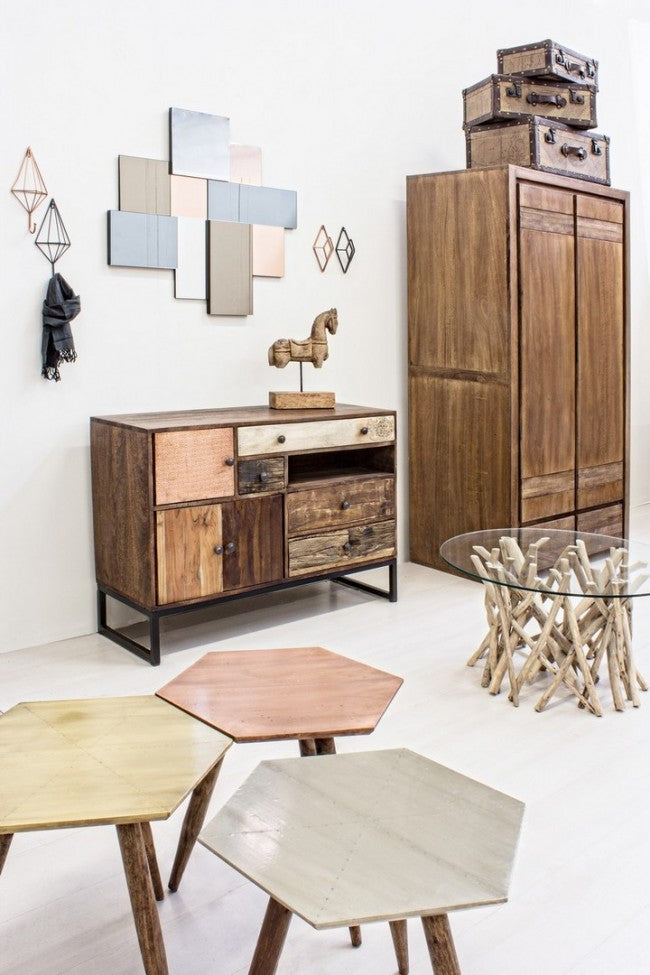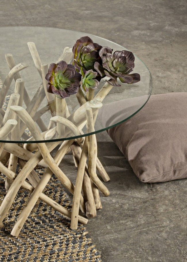Table Basse Ronde Samira D80 avec Verre en Teck