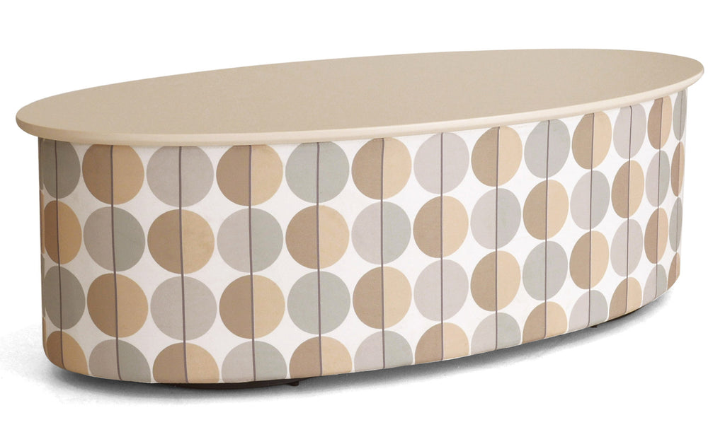 Table de rangement avec structure en MDF, rembourrage en polyuréthane et revêtement en tissu optique crème.