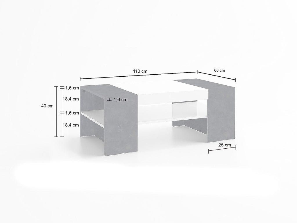 Tavolino da Caffè 110x60x40 cm Cherry Bianco Lucido e Ardesia