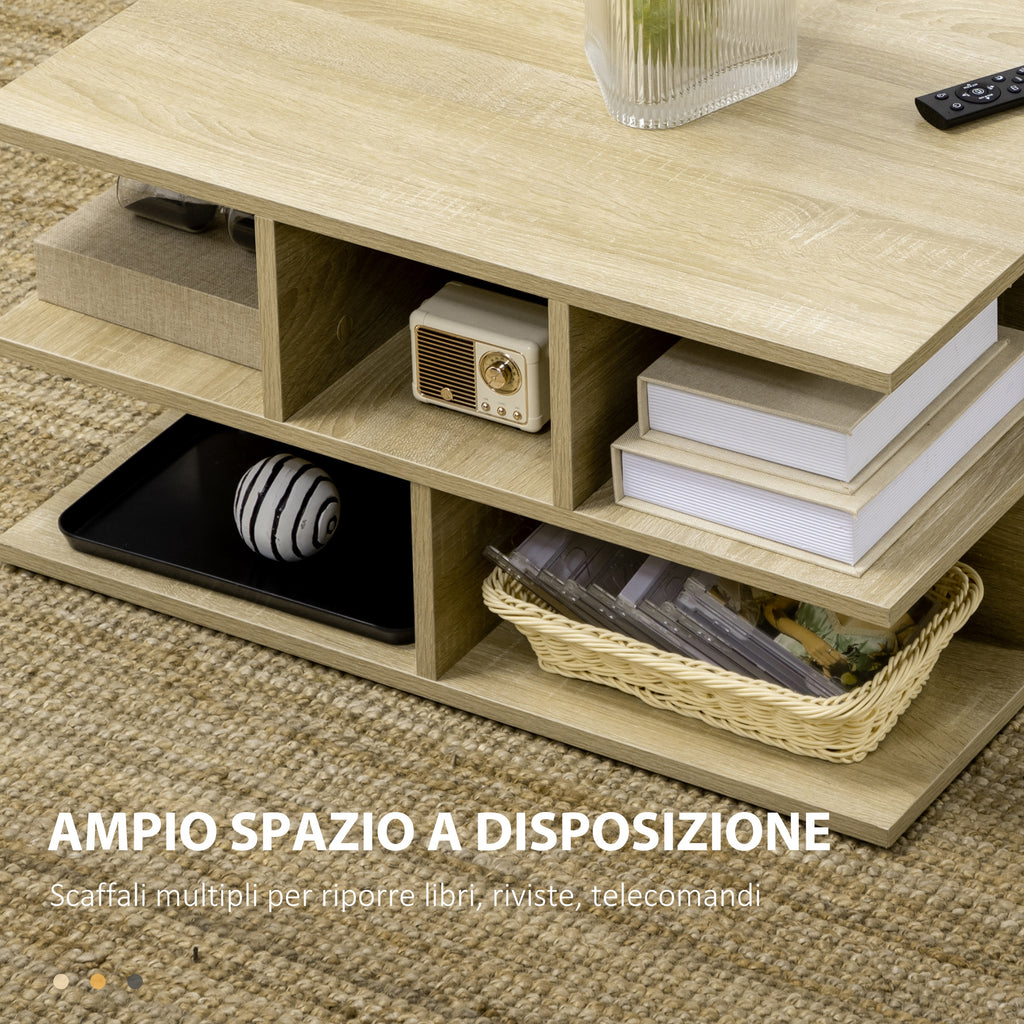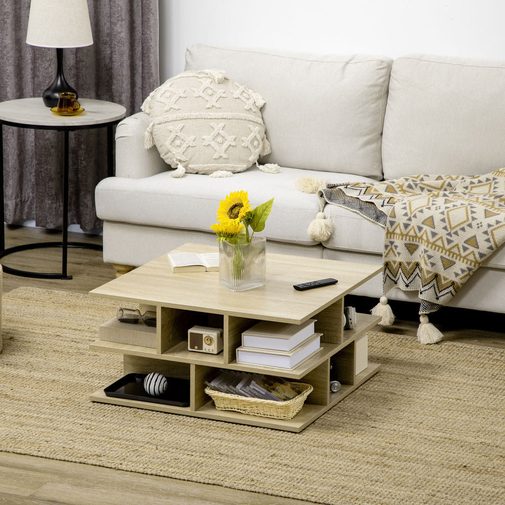 Table basse à 2 niveaux 70x70x36,5 cm avec étagères ouvertes en aggloméré couleur bois
