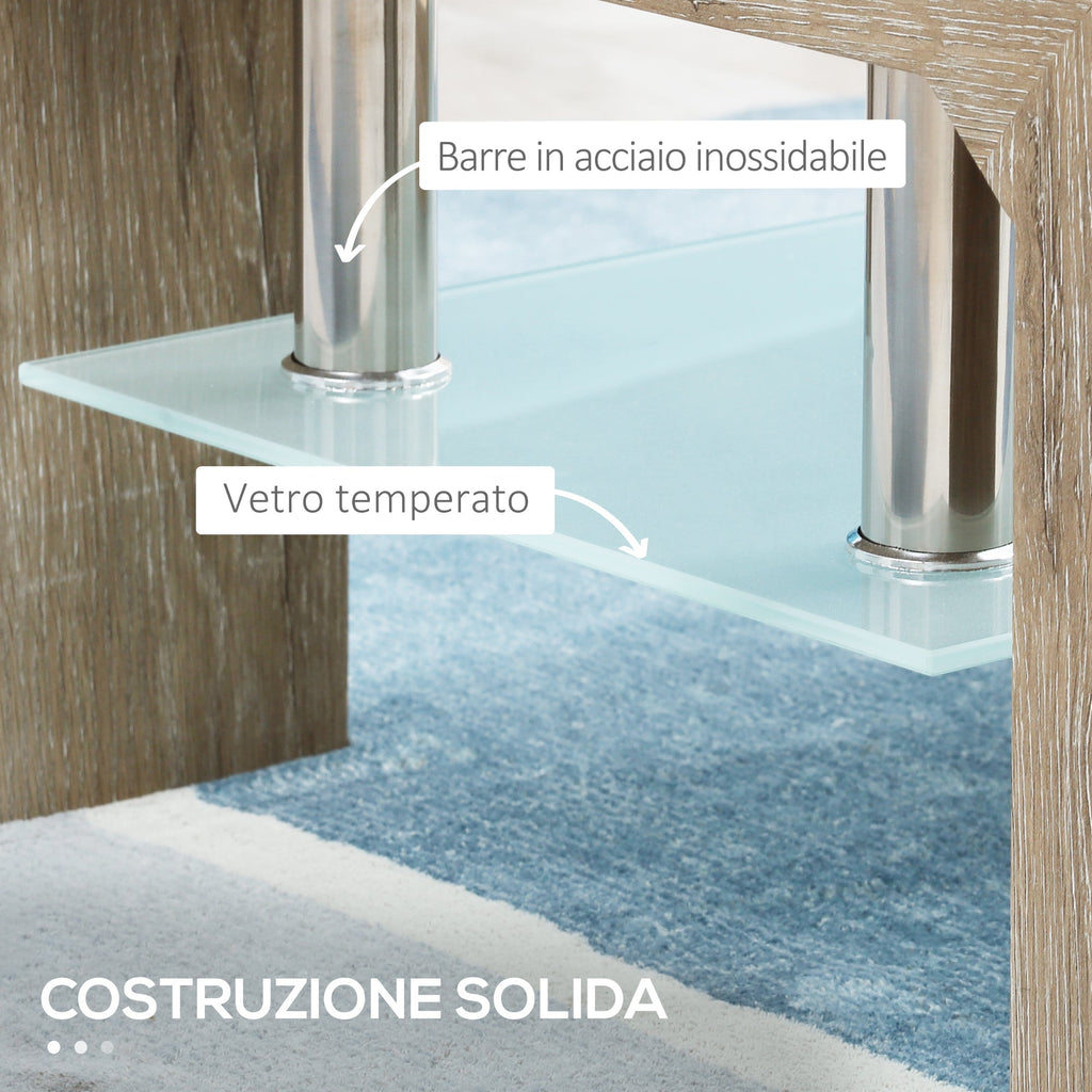 Table Basse 2 Niveaux 90x50x42 cm en Verre et Bois Naturel