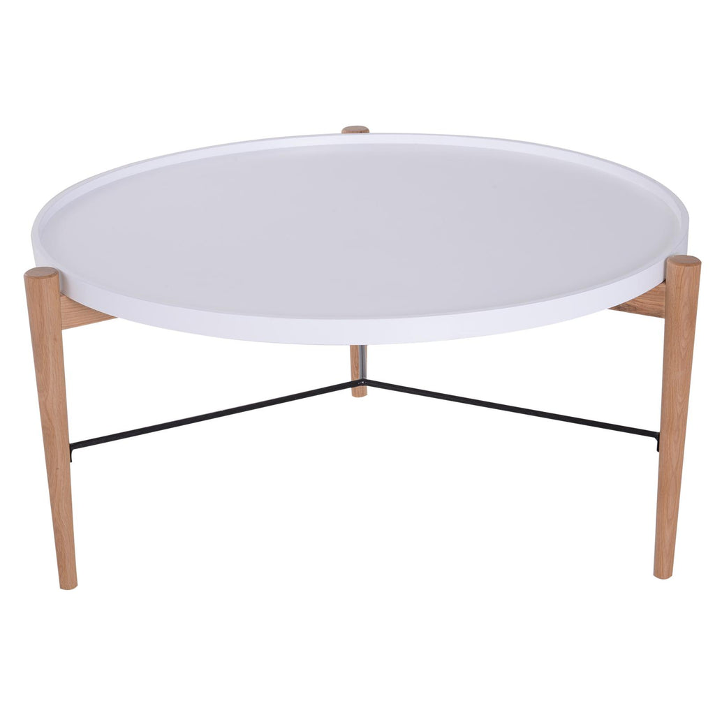 Table basse ronde moderne en bois et acier blanc 90x45 cm