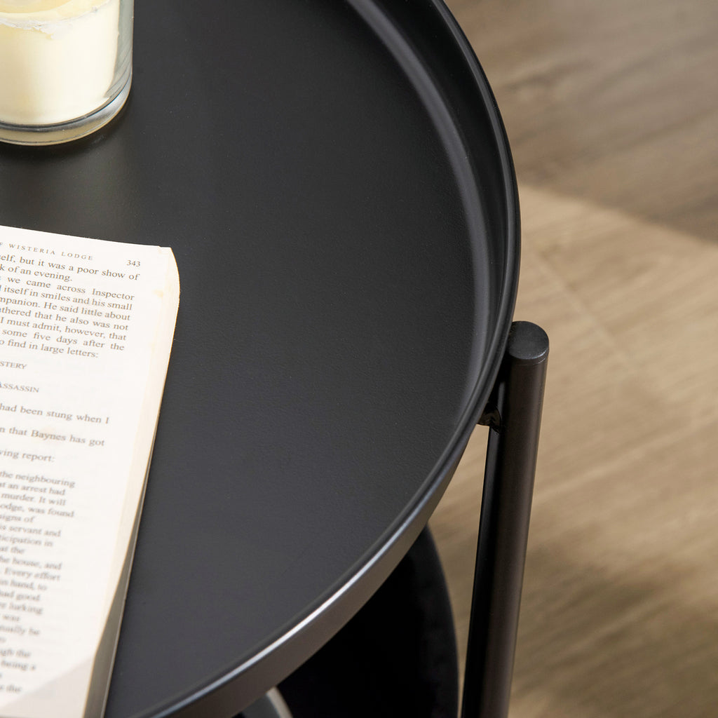 Table basse en acier Ø46x48 cm avec panier en tissu noir