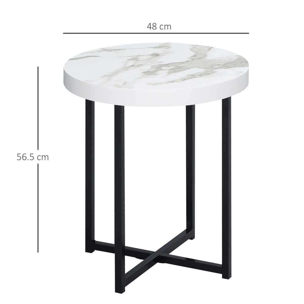 Table Basse Ronde avec Base en X 48x48x56,5 cm en MDF et Métal Blanc